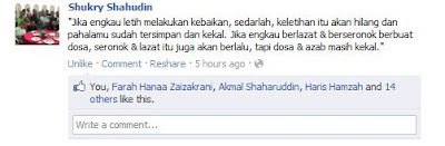 orang yang ingin berubah, selalu fikir dua tiga kali. perlu ke tak perlu? ok ke tak ok? kalau nak ikutkan, tak perlu untuk kita persoalkan diri kita kali kedua ketiga. kerana perasaan ingin berubah yang datang pertama kali, insyaAllah datang daripada Allah. kemudian, kita akan resist dan reluctant sebab syaitan dah ambil port dia.